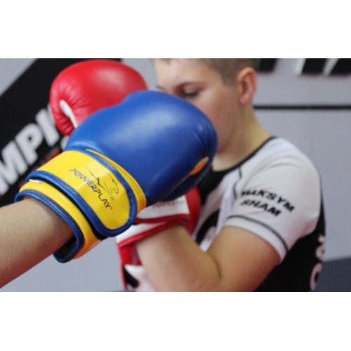 Боксерські рукавиці PowerPlay 3004 JR Classic Синьо-Жовті 8 унцій