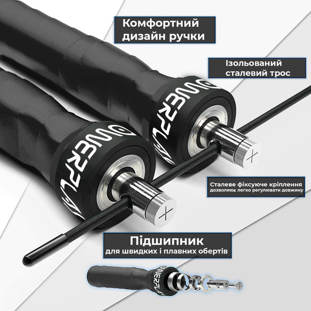 Скакалка скоростная на подшипниках PowerPlay 4208 Fitness Jump Rope Черная (3m.)
